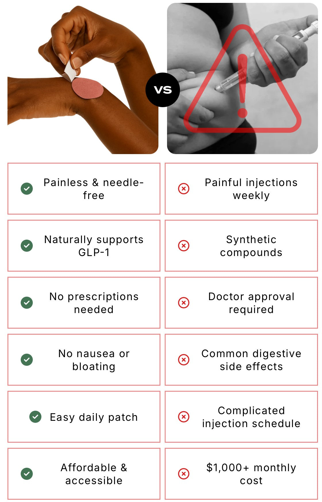 Totally get it. Ingredia works differently. Instead of forcing results with harsh pills or injections, our patch supports your body's natural rhythm, reducing cravings, stabilizing energy, and helping you feel in control again.